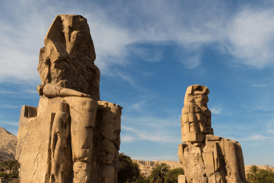 One of the largest structures in Luxor is the Colossi of Memnon, that was erected by Amenhotep III (1386-1350 BC) to stand in front of his temple in Cairo.