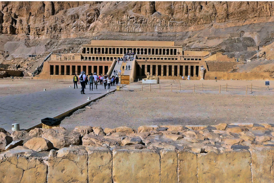 The Mortuary Temple of Queen Hatshepsut, located at Deir el-Bahari, is a magnificent masterpiece of ancient architecture. Built in honor of Egypt’s most successful female pharaoh, it features detailed reliefs illustrating her divine birth and her famous trading expedition to the Land of Punt. Rising elegantly from the surrounding cliffs, the temple stands as a lasting symbol of her strength, leadership, and vision.