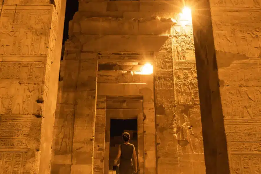 In the afternoon, you reach Edfu. A short ride takes you to the Temple of Horus, one of the best-preserved temples in Egypt. The entrance towers above you, and inside the walls still show clear scenes and inscriptions. Your guide explains the main story of Horus and the parts of the temple that are most important.