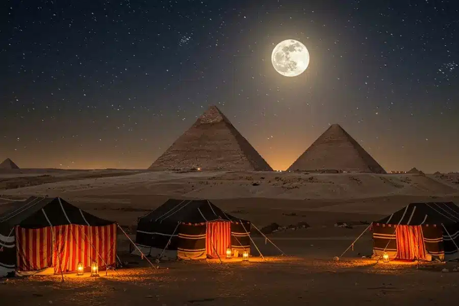 In the evening, your guide will pick you up for a peaceful dinner cruise on the Nile. As the boat glides along the river, you’ll enjoy views of Cairo’s lights reflecting on the water, accompanied by a buffet of traditional Egyptian dishes and soft live entertainment. It’s a gentle and enjoyable introduction to Egypt, setting a relaxed tone for the days ahead.