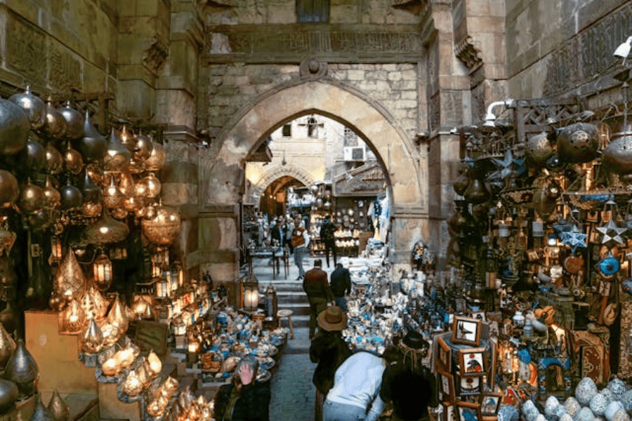 Khan El Khalili Bazaar is the most famous souk in Egypt. This market was founded during the Mamluk Era, and it was a significant hub for global trade and goods exchange.